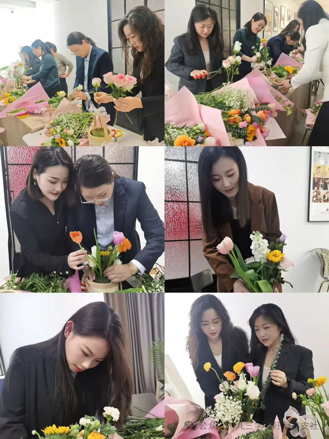 花艺沙龙现场,大家自行从取材、剪叶、构思开始,逐步完成了插花作品,展现不同花卉所蕴含的寓意,一簇簇独具特色的花卉绽放在活动现场,在芬芳的花香和愉快的气氛中,女社员们度过了一个充实愉悦的节日。