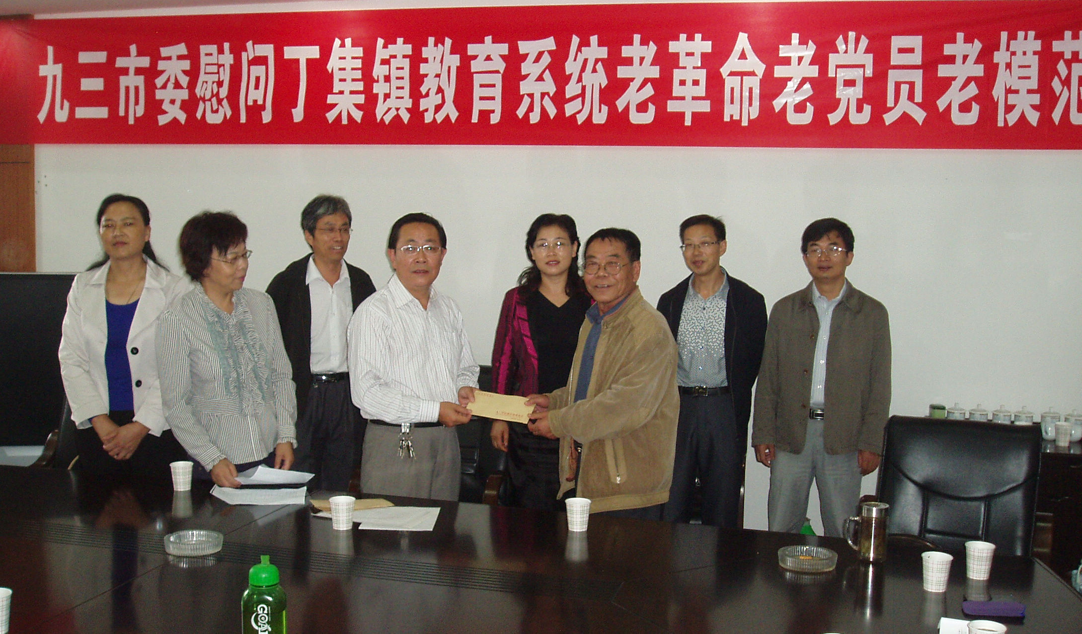 9月9日,在第二十七个教师节和传统中秋佳节来临之际,社淮安市委专题举行了“和谐淮安建设志愿团教育行”活动,赴淮阴区丁集镇慰问教育系统的“三老”人员(老党员老革命老模范)。在淮安市人大常委会副主任、九三学社市委主委李冰组织下,由九三学社市委副主委、政协淮安常委陈伏涛带领,来自淮阴师范学院的张德顺教授、淮阴工学院的徐晓梅教授以及淮安市中小学教育系统的九三学社教育专家等一行8人,为丁集镇教育系统的10名老党员老革命老模范送去了节日问候和慰问金。活动过程中,专家们还就省教育改革实施动向、基础教育阶段如何培养学生科学素质等问题与丁集镇中小学教师进行了交流。