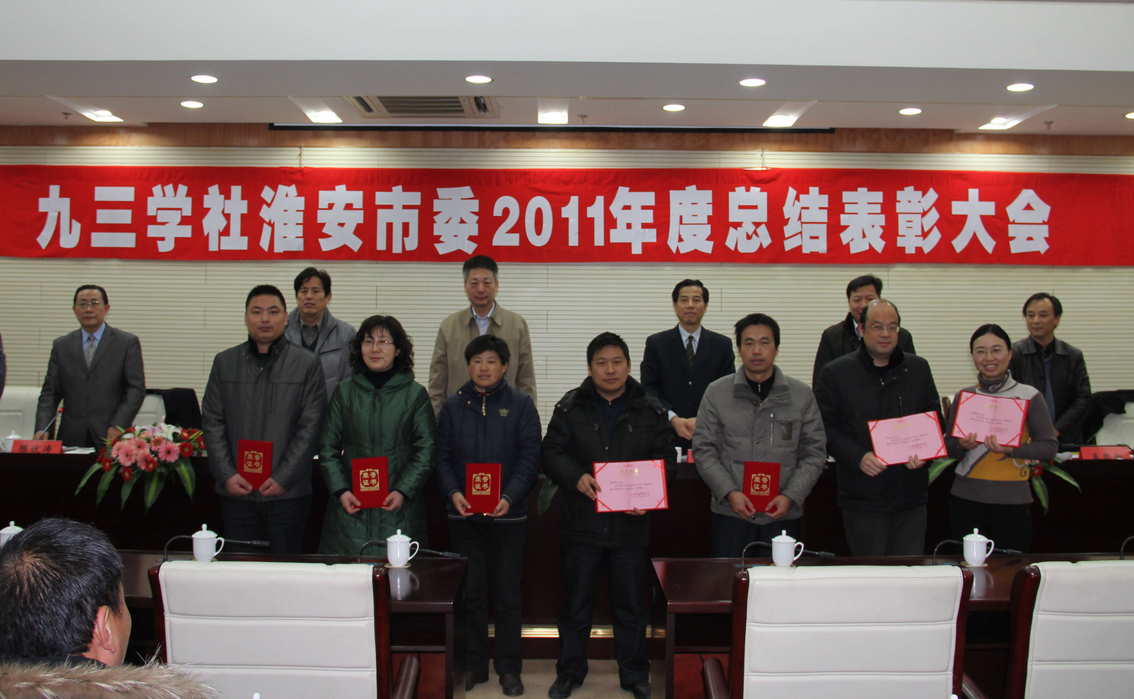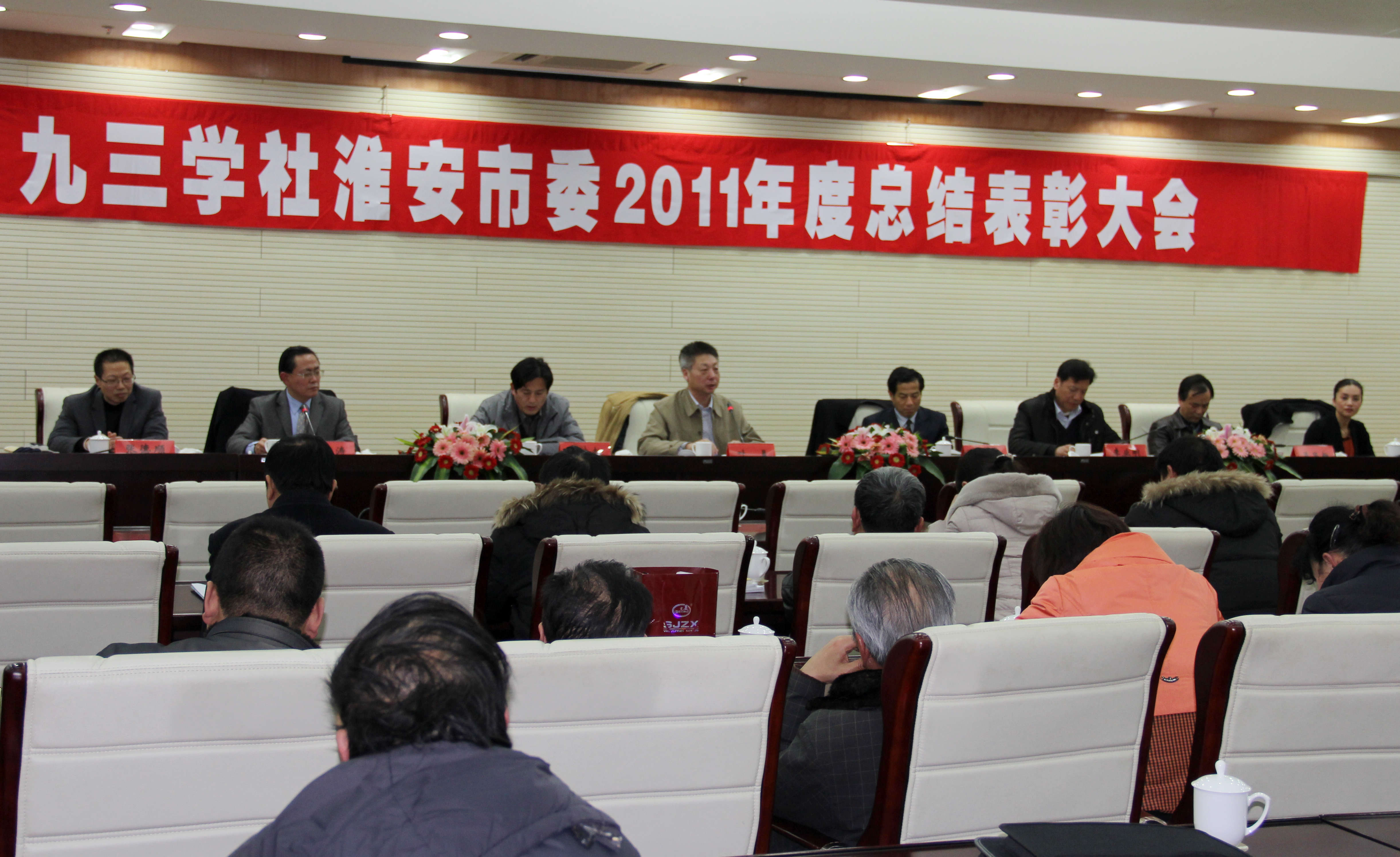 2月29日上午,社市委召集全体九三学社社员在市会议中心召开了2011年度总结表彰大会。会议由李冰主委主持,省政协副秘书长、九三学社江苏省委副主委叶勇,社省委调研处处长肖大松莅临会议,市委统战部副部长李业刚应邀参加会议,社市委副主委吴昌新、陈伏涛、张德顺、王樱在主席台就坐。
