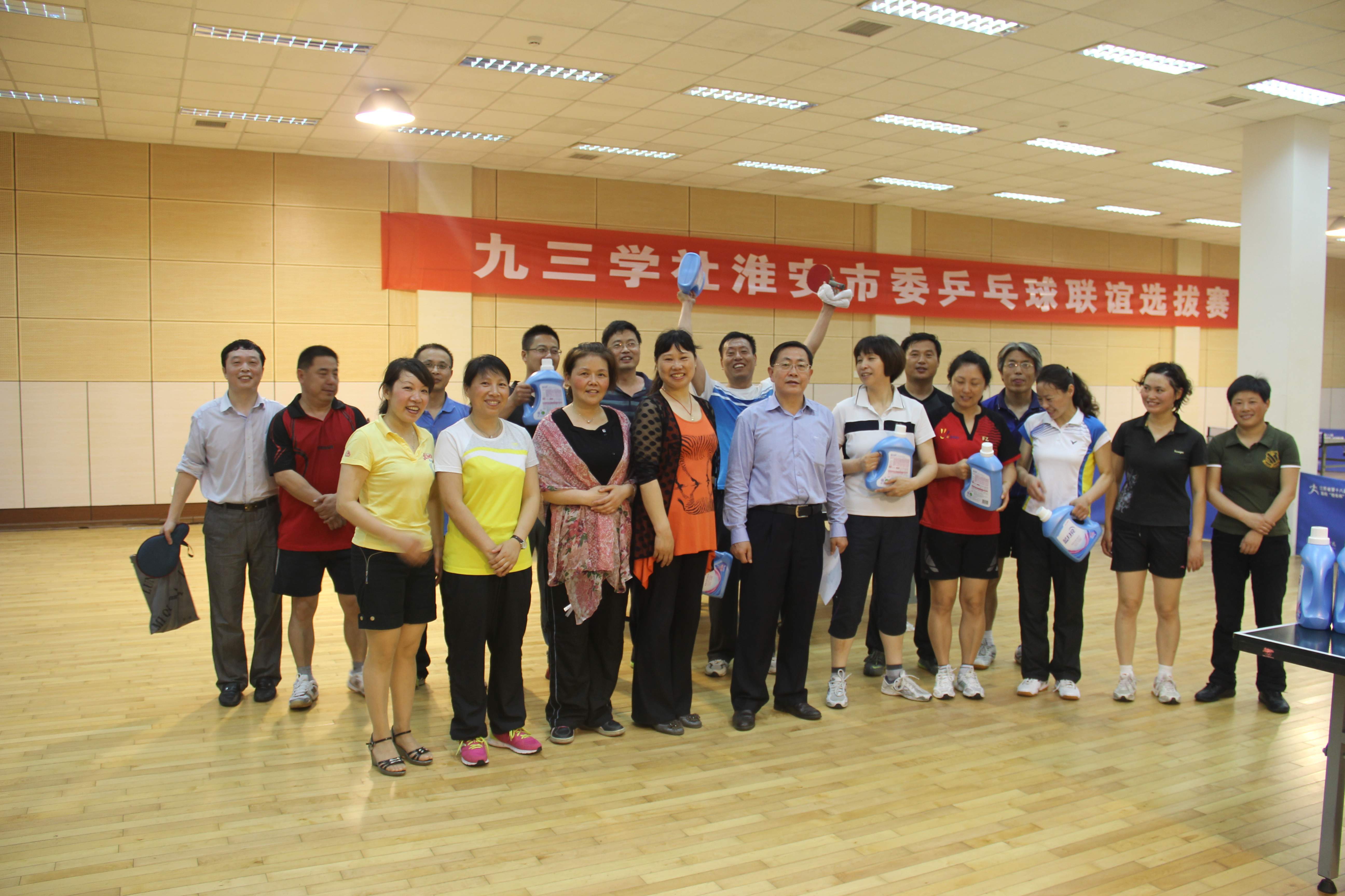 为促进社员交流互动,丰富社员文体活动,锻炼社员健康体魄,结合九三学社江苏省委即将举办的全省九三组织乒乓球比赛情况,5月26日上午,在淮阴工学院乒乓球馆,九三学社淮安市委举办了一场乒乓球联谊选拔赛。经过前期组织,21名社员参加了比赛。