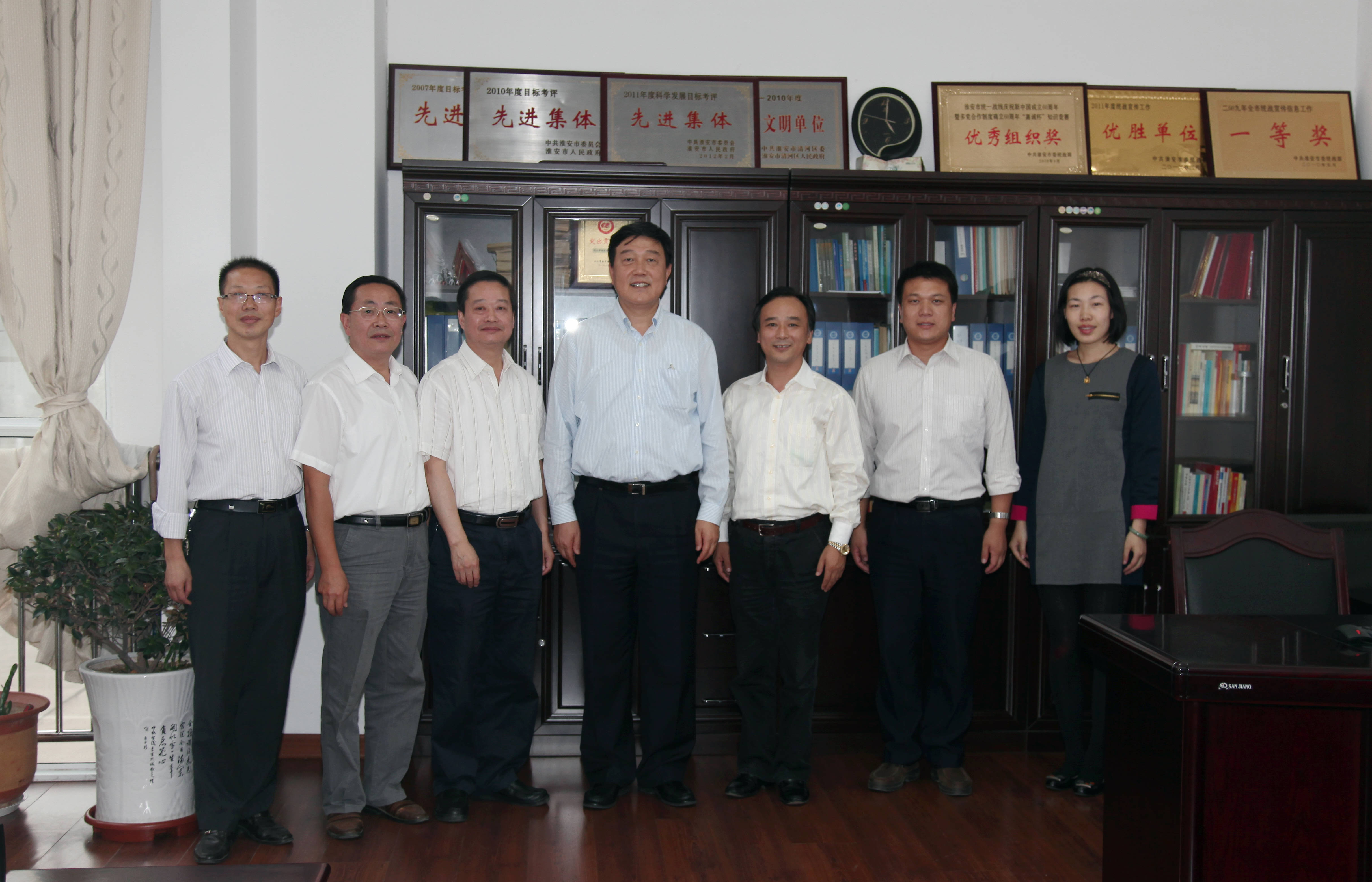 谈到九三学社淮安市委的工作,他说“九三的工作重点非常突出,充分发挥本党派的优势和特点,一是在参政议政建言献策上发挥作用,二是在对接企业,推动创新上发挥重要的作用,作出很大贡献。党派工作不一定要力求全面,各个党派的工作能搭建好平台,将最突出的优势发挥出来,这样开展工作就很好,这也体现出我们九三的工作思路很清晰,工作成效明显。在“三个百”活动中,九三建的专家工作站最多,工作站的质量很高,有一大批科技界的、教育界学有建树、业有专长的专家、学者,这就是将自身的优势发挥好。中共和各民主党派、工商联、知联会一直同心同德、同心同向、同心同行。希望九三学社在下一步工作中,一是紧紧围绕着中共淮安市委已经确定的工作目标,尤其是市委六届三中全会确定的工作目标和思路,团结共勉我们党派的同志,围绕这个中心任务来发挥作用。二是充分发挥党派自身的优势特点,发挥“人才库”、“智囊团”的优势特点,继续在参政议政、建言献策发挥重要的作用,包括在科技创新、企业转型升级等方面发挥重要的作用。三是利用我们党派成员在各自的单位和所处的界别威信高、影响大的优势,团结身边的群众,一方面了解社情名义,另一方面协助党委政府,做好群众工作,构建和谐稳定的社会环境。四是推动全民创业、淮商崛起。虽然我们党派成员主要的不是在经济界,但我们党派成员在这方面也有优势,例如老师可以向学生灌输创业的理念和精神,专家、学者可以在企业创业过程中提供智力支持。淮安发展的局面需要更加生动一点,整个社会需要创业文化,需要有一种创业冲动,要有发展的欲望,不服输、不守成、不满足,有一种热诚地发展势头。希望我们党派发挥作用,鼓动宣传、支持鼓舞。九三的工作做得很好,希望广大的九三成员在 “两大目标”和“六大战略”的实施中发挥更大作用。