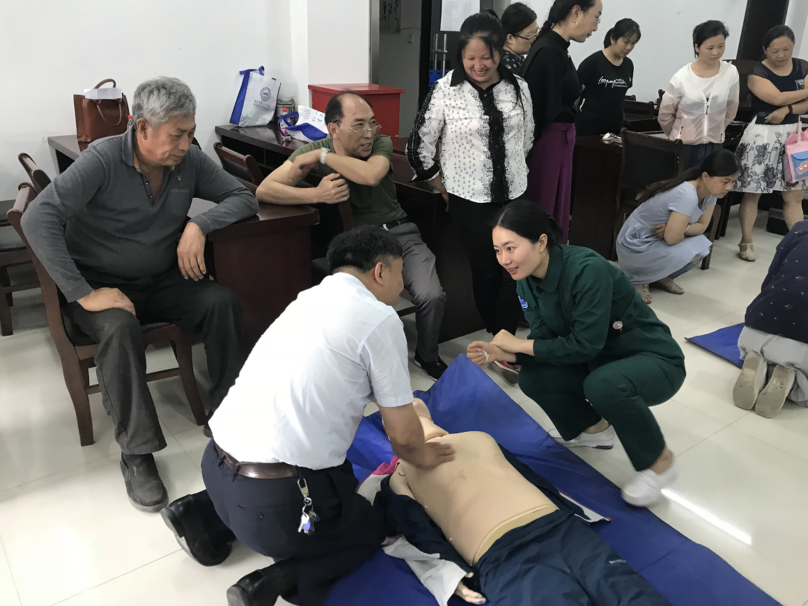 同时进行现场自救模拟演练。为提升培训实际效果,专家们邀请参训人员实地演练,并手把手指导操作要点。培训过程中,大家认真听讲,不时与培训老师进行互动,询问与急救、日常保健的相关问题,并实际参与操作,课堂气氛十分活跃、融洽。
